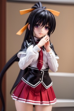 pvc style,akenohimejima, <lora:akeno himejima anime s1-lora-nochekaiser:1>,akeno himejima, long hair, black hair, ribbon, very long hair, (purple eyes:1.1), hair ribbon, ponytail, antenna hair, smile,BREAK skirt, school uniform, shirt, white shirt, capelet, black capelet, long sleeves, red skirt,BREAK indoors, classroom,BREAK looking at viewer, (cowboy shot:1.5),BREAK (masterpiece:1.2), best quality, high resolution, unity 8k wallpaper, (illustration:0.8), (beautiful detailed eyes:1.6), extremely detailed face, perfect lighting, extremely detailed CG, (perfect hands, perfect anatomy),figma,full body,