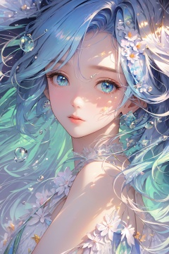 (((masterpiece))),((extremely detailed CG unity 8k wallpaper)),best quality,high resolution illustration,Amazing,highres,(best illumination, best shadow, an extremely delicate and beautiful),Colorful colors,mother of pearl iridescence,1girl,anime girl and blue hairs, ((a full body)),wallpaper, 3d wallpapers, in the style of colorful, eye-catching compositions, ephraim moses lilien, delicate flora depictions, realistic depiction of light, glittery and shiny, detailed facial features,bubble,Wide-angle lens,<lora:digital_colorful:0.8>