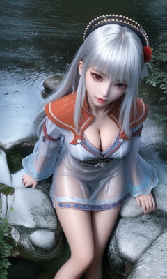 (,1girl, ,best quality, ),looking at viewer, <lora:433-DA-少年歌行-小白:0.8> ,(Highest picture quality), (Master's work), full body, (ultra-detailed), the portrait is centered, 1girl, raiden shogun, nsfw, (wet clothes), blush, bare hips, (sheer shirt), (from above:1.7), (translucent dress), water drop, (rain), (outdoors), stained, wet hair, wet dress, wet, scenery, (long hair), nature background, close up, ((on back)), water, lying in water, masterpiece, best quality, ultra high res, highly detailed, (abstract expressionism art:1.4), [girl | fire ghost:10], love,, dark rainbow theme, colorful, visually stunning, beautiful, gorgeous, emotional, intricate, perferct shading, rainbow hair,upper body,(cleavage),