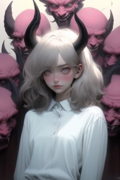 qzqzz,1girl,upper body,solo,closed mouth,shirt,medium hair,lips,white shirt,long hair,blush,<lora:qzqzz-000020:1>,laziness,half open eyes,solo,lazyprocrastinator,lazy eye,yanwulazy,smoky,demon girl,devil horns,acorea,drooping eyes,, masterpiece, best quality,