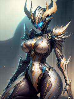 (masterpiece:1.2), best quality, high resolution, unity 8k wallpaper, (illustration:1.0), beautiful detailed, extremely detailed, perfect lighting, extremely detailed CG,glowing eyes,,armor,full_armor,warframe,horns, fake horns, blue eyes, global ray tracing,large breasts, pantyhose, large_ass,looking at the viewer,solo,perspective, <lora:warframe_v1-000012:0.8>