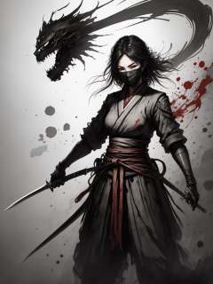 shuimo,best quality, high resolution, unity 8k wallpaper, (illustration:1.0),<lora:shuimo_v1:0.5>,1girl, ninja,mask,sword,blood,