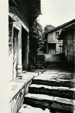 sketch,monochrome,stairs,greyscale,tree,traditional media,house,scenery,no humans,outdoors,<lora:GoodHands-vanilla:1>,best quality,high resolution,unity 8k wallpaper,photo_\(medium\),<lora:sumiao:0.75>,