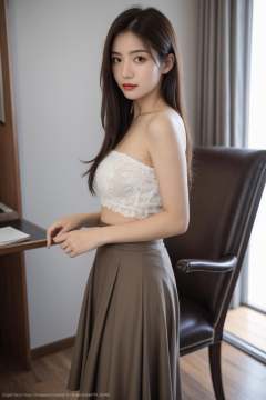 (masterpiece:1.3),best quality,high resolution,unity 8k wallpaper,(illustration:1),perfect lighting,photo_\(medium\),photorealistic,realistic,<lyco:GoodHands-beta2:1>,finely detail,extremely detailed,soft lighting and shadow,soft yet striking lighting,film grain:1.2,(skin pores:1.2),(detailed skin texture:1),cellphone picture,((solo:1.5)),Detailed face,(see-through:1.1),misty,Low Key:1.1,depth of field,1girl, solo, long hair, brown eyes, brown hair, skirt, indoors, realistic, standing, breasts, looking at viewer, bare shoulders, black hair, chair, watermark, long skirt