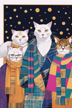 CX,  cat,  white fur,  short fur,  gold-rimmed glasses,  audience-oriented,  colorful scarf, touxiang,  whiskers,  cool,<lora:EMS-261798-EMS:1.000000>