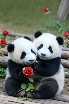 Panda,flower, no humans, roses,
