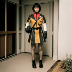(masterpiece:1.3),(the best quality:1.2),(super fine illustrations:1.2),(Masterpiece),high quality,high detail,(white background:1.2),looking at viewer,(SOLO:1.4),outline,simple background,full body,<lora:guys-小好-真人底模:0.8>, belt,logo,jacket,boots,choker,black footwear,black legwear,skirt,solo,armor,miniskirt,bare leg,thigh,thighhighs,uniform,bodysuit,belt pouch,collar,helmet,gloves,fingerless gloves,ollar,emblem,military uniform,