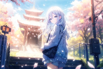 [(white background:1.4)::10], [clear background], [(Lake and forest background:1.2):5]+++(databook:1.4), (concept art:1.2),(double v:1.2),+++++masterpiece,loli,(petite:1.2),high ponytail,medium breast,(panorama:1.2),caustics,best quality,beautiful detailed eyes,((white hair)), longhair,disheveled hair, messy hair, long bangs,extremely detailed, floating hair,solo, best quality, masterpiece, highres, original, extremely detailed wallpaper,{an extremely delicate and beautiful}++++loose clothes,(white t-shirt:1.4),(black open jacket:1.2),++hairclip+/*/*/*++(floral print:1.2)+/*/*/*+++, ((blue eyes)), (full body, standing),solo, sea, (anime style), (anime screen), portrait, close up, anime style, looking at viewer, blurry, blurry background, blush, bangs, depth of field, masterpiece,best quality,1girl,blue_eyes,Beautiful face,delicate eyes,smile,long hair,white hair,tree,stairs,standing,sky,cherry blossoms,temple,looking at viewer,upper body,from below,looking back,((Mecha)),young girl,Cyberpunk,CyberMechaGirl, 1girl, solo, long hair, looking at viewer, hair, blurry, blurry background, blush, bangs, depth of field,cuteloli,solo,long hair,blue eyes,shirt,hair between eyes,very long hair,blue hair,standing,jacket,,shorts,short shorts,,blue jacket,track jacket,chibi, kanade