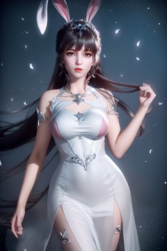 (8k, RAW photo, best quality, masterpiece:1.2),hatching (texture),skin gloss,light persona,(high detailed skin),glossy skin,contrapposto,female focus,model,(hot:0.7),sexy,fine fabric emphasis,wall paper,fashion,Lipstick,depth of field,masterpiece,best quality,official art,extremely detailed CG unity 8k wallpaper,1girl,upper body,dress,starry background,milky way,glowing butterfly,1girl,solo,very long hair,rabbit ears,animal ears,bare shoulders,pink_dress,white_dress,long dress,red_eyes,white pantyhose,full body,snowing,snowflakes,xwhd,looking at viewer,<lora:1030xw-000010:0.8>,ty-hd,<lora:0110田野-000005:0.6>,