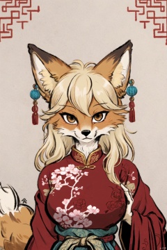 masterpiece, best quality, looking at viewer,furry fox girl,blonde,long hair,chinese clothes, hair ornament,