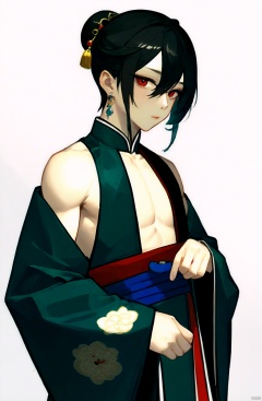 wlop,1 man,upper body,femboy,solo,wearing a chinese traditional cloth,bare upper body,nude upper body