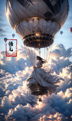 A hot-air balloon drifts above an abandoned theme park, the pilot capturing haunting photos of overgrown roller coasters and flooded game stalls., rubber material, fullbody shot, Claude Monet, Jamie Hawkesworth, Gertrude Abercrombie,(dramatic, gritty, intense:1.4),masterpiece, best quality, 32k uhd, insane details, intricate details, hyperdetailed, hyper quality, high detail, ultra detailed, Masterpiece,bridal veil,wedding dress,<lora:绪儿-热气球stage:0.9>