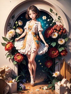 ((Masterpiece, best quality, edge quality)), edgie, girl,1 girl dancing with a bag on her back in the flowers, drawn in edgFae style, wearing edge, butterfly,flowering shrubs, Paper Cuttings style,