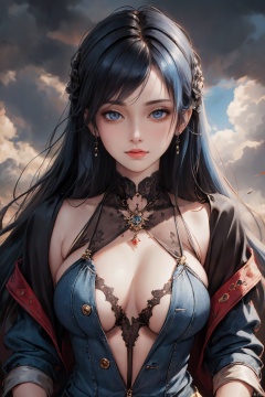 Realistic style,  a beautiful woman in jeans and high heels,  goddess fan,  colored hair,  smiling in the face of the audience,  art,  artist,  simple volume light background,  rotating clouds,  color art,  chibi, UHD HD,  exquisite details,  exquisite face,  exquisite hair.,  1 girl,<lora:EMS-260619-EMS:0.700000>