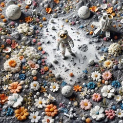 masterpiece,(realistic:1),(photorealistic:1),intricate detail,highly detailed,great textures,8k,high detail,miniature,landscape,overview,simulating a lunar landing,miniature,astronaut,lunar landing,simulation,crumbled texture,whimsical,creative scale,scene construction,storytelling,simple white background,solo,from above,poakl flower style,<lora:poaklflowerstyle-000009:1.0>,