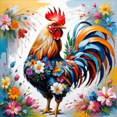 expressionist painting of a rooster hyperrealist energetic brushwork bold abstract forms expressive,poakl flower style,<lora:poaklflowerstyle-000009:1.0>,