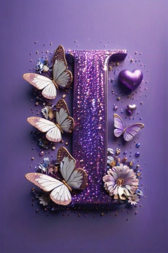 Name "CREATIVE" 3D metallic purple glitter with metallic purple heart, metallic purple butterfly, metallic purple peal. Everything in front 3D rendering, typography, 3d render, poster, fashion