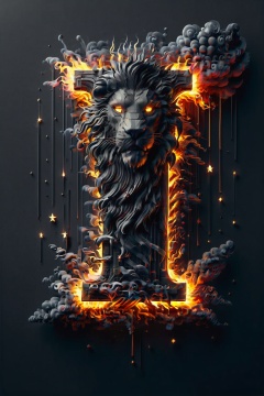 The nameCREATIVE with fire, smoke, and lightning stars IN DIFFERENT SHADES OF black and a lion's head, typography, 3d rendering, photography, architecture, photo, fashion, vibrant, cinematic, 3d render, poster