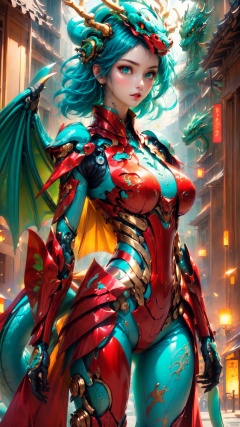 Color difference, soft light, (masterpiece), (best quality), (detail), (masterpiece), (high resolution), (perfect face), glowing eyes, ((Flower city)), (street), daytime, natural light, rain, reflection, blue eyes, Rococo, perspective, city street, (1 girl) ), blush, delicate facial portrayal, solo, 1 girl, 1/3 suit, cute, ultra high resolution, woman, (gold clothes), (collar), (Bright skin: 1), (Bright skin: 1.1), (Delicate beautiful eyes: 1.2), ((((no wing))), (((no wing))), ((no wing)), 8K resolution, best quality (masterpiece), best quality, beautiful woman, (Masterpiece, best quality, official art, extremely detailed CG8k wallpaper), game_CG, Beautiful Masterpiece, Detail, 3D Rendering, 3A Masterpiece, Thick Paint, Highest Quality, ((Flying Beauty)), ((Beautiful Features)), (Long Turquoise Hair), Small and delicate (((antlers)), delicate and charming face, beautiful eyes, ((green pupil)), delicate and delicate nose, ((glossy lips of attractive light color)), good figure, (Turquoise Bodysuit), ((Turquoise Dragon Lady Armor), "A green oriental dragon wrapped around his arm), ((Green Embroidered Dragon Practice Uniform), (Green Embroidered Dragon and Han Pants), good figure, ((Green slender dragon with flexible swinging tail)), (Green Embroidered Dragon Cloak), (((Mech Girl))), mechanical high heels, dragon-shaped mechanical exoskeleton armor, turquoise fuselage, golden eyes, neck braces, tactical leg knee pads, ((single dragon-shaped exoskeleton armor)), mechanical headdress, white mechanical clothing, Chest mechanic armor, ((Turquoise Dragon Emboss)) 8K resolution, best quality (masterpiece), best quality, (bishoujo), (Masterpiece, best quality, official art, extremely detailed CG8k wallpaper)