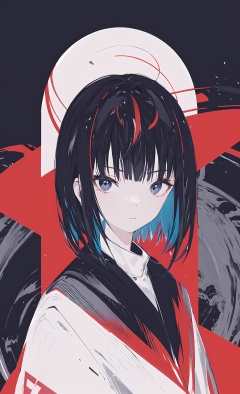 solo, 1girl, black hair, looking at viewer, bangs, closed mouth, upper body, black eyes ////////, <lora:saki2-000282:1>