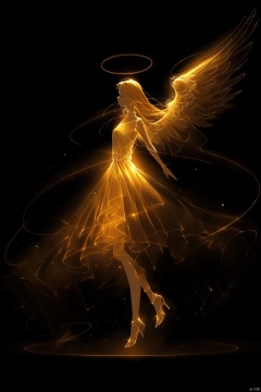 halo,Black background,Feathered wings,Light particles,Angel's Wings,angel