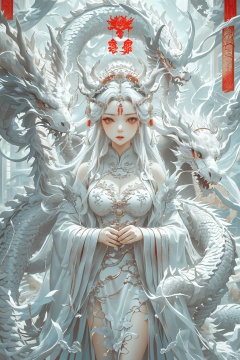 A girl, queen, majestic Zhuang Su, drakan_longdress_crown,Dragon-shaped crown, Chinese dragon,Gorgeous costumes, high-detail crowns, high-complexity headdresses,High complex headdress,High-detail dragon crown