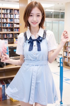 ,short dress,short hair,middle school uniform,library,,side-tie panties,