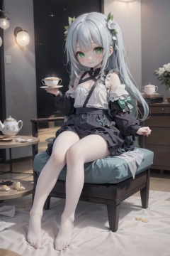 (masterpiece:1.3),(best quality:1.2),original,illustration,(an extremely delicate and beautiful),cinematic lighting,volume lighting,ADDBASE,(1girl:1.2),(solo:1.4),(sprite:1.2),(green eyes:1.2),(grey hair:1.2),very long hair,medium breasts,(white uniform:1.1),(subtle smile:1.1),sipping tea delicately,(daintily holding teacup:1.2),(one teacup:1.2),(delicate tea set on the table:1.2),(sitting on chair:1.2),ADDCOL,(starship:1.1),(starry background:1.3),(clusters of stars:1.2),star_trail,(hyper_galaxy:1.2),(universe:1.2),(planet:1.2),(space:1.2),one teacup,