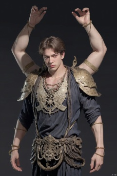 (1boy:1.6),solo,mature,incredibly absurdres,absurdres,realistic,full_shot,, Multiple arms, Bronze_ Armor