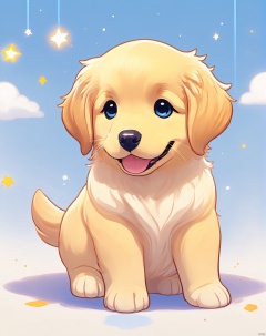 Baby Golden Retriever, One puppy、 official artwork, , Lori, anime style portrait, anime moe art style, 2 d anime style, Cute art style, Stylized anime, Anime Art Style, Anime style. 8K, anime style 4 k, Anime Art Style, digital anime art!!、White puppy、fluffly、Baby Golden Retriever、blanche、Vigorous、A charming smile、dynamicposes、((masterpiece))、(((top-quality))、Chibi Chara、,