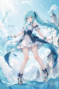 best quality,(masterpiece:1.3),full body,ultra-detailed,solo,1girl, battle_aura, helical_visible_aura full of background,cool and powerful pose,Capital of Water, bracelet made of water around hands,Magic Circle,aqua_aura,floating hair,floating water droplets surronding,dynamic pose, dynamic angle