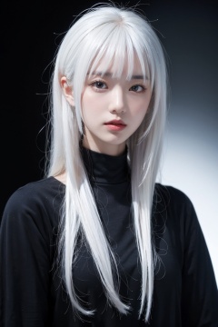 ,1girl, simple background, black  background,white  hair,