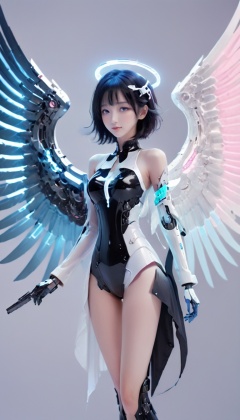 <lora:xl-shanbailing-0112yin_yang:0.8>,left and right different colors,(1girl:1.2),wings,(solo:1.2),left blue right pink,color patches,contrast,with a futuristic wing,1girl,solo,mechanical wings,breasts,black hair,wings,hat,long hair,bodysuit,science fiction,eyeshadow,smile,single mechanical arm,gloves,white headwear,two-tone hair,gradient,crossed arms,bangs,gradient background,beret,grey hair,asymmetrical clothes,mecha musume,cowboy shot,