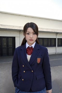 (1girl:1.3), (best quality, masterpiece, ultra high resolution),(photorealistic:1.3), (realistic:1.3), depth of field,(outdoors:1.2), (day:1.2), (cinematic lighting:1.2),  school uniform
