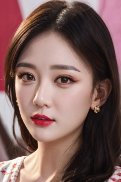 PHOTOREALISTIC REALISTIC, masterpiece, best quality, highres, ultra detailed, 8k,1woman,portrait,makeup, lipstick, looking at viewer,chenqiaoen