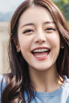 PHOTOREALISTIC REALISTIC, masterpiece, best quality, highres, ultra detailed, 8k,1woman,portrait,smile,teeth,open mouth,dilireba