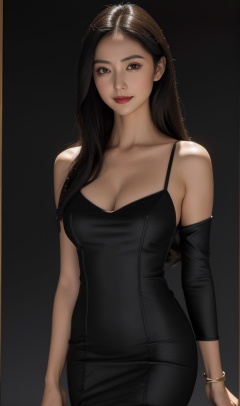 Skin granule,skin texture,in the dark,contouring light,low key,Catch lights,big eyes,Studio,Solid color background,hair flaps,Dark clothing,black hair,perfect face,Oval face,Seductive smile,upper body,best quality,masterpiece,realistic,Studio lighting,ultra-fine painting,sharp focus,extreme detail description,realistic,masterpiece,1girl,sex,thigh,bangle,summer bodycon dress,