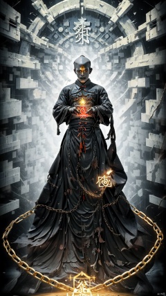(Photo) (Chains, Chains) (Horror Movie) (Chinese Period Costume) (No Hair) 1 Boy (Yellow Rune) (Rotting Corpse) (Magic Circle) (Mutant) (Red Muscle) (Chinese Totem) (Enhanced Texture) (Male Emphasis) (Magic Circle) (Red Curse) (Alchemy) (Li Square background, Ruins of ancient civilizations, surrounded by black air, Atlantis).