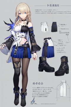 multiple views, pencil sketch, (sketch:1.25), (little girl,small breasts,), ((no shoes)), shy, best quality, graphite \\(medium\\), ske, gradient, rainbow, note, Line draft, highres, absurdres, (ultra-detailed:1.1), (illustration:1.1), (infographic:1.2), pajamas, (all clothes configuration:1.15), (solo), perfectly drawn hands, standing, cohesive background, paper, action, (character design:1.1), <lora:xiluwa-v100-000022:0.8:lbw=OUTALL>, xiluwa, 1girl, blonde hair, blue hair, black footwear, multicolored hair, long hair, skirt, earrings, pantyhose, blue eyes, jewelry, asymmetrical sleeves, bare shoulders, black choker, bangs, Lightning tattoo, thigh_strap
