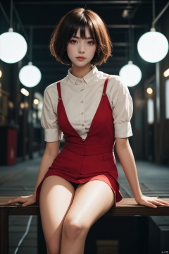a Girl, solo, short hair, bangs, red eyes, glowing, glowing eyes,