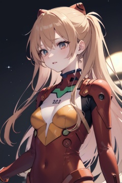 (best quality, masterpiece, colorful, dynamic angle, highest detailed)(Asuka Langley), upper body photo, fashion photography of cute red long hair girl (Asuka Langley), dressing high detailed Evangelion red suit (high resolution textures), in dynamic pose, bokeh, (intricate details, hyperdetailed:1.15), detailed, moonlight passing through hair, perfect night, (fantasy background), (official art, extreme detailed, highest detailed), HDR+