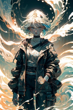 (dramatic,  gritty,  intense:1.4), masterpiece,  best quality, 8k,  insane details, hyper quality, ultra detailed,  Masterpiece, (calligraphy:1.4), (ether colorful ink flowing:1.3), 1girl, A shot with tension, white hair, exposed collarbone, sideways, Simple background,  chinese style,<lora:EMS-174598-EMS:1.000000>,<lora:EMS-265964-EMS:0.600000>