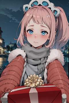 1girl, IncrsGettingAPresent, pov, winter clothes, scarf, <lora:POVGettingAPresent:1>, feliciarnd, <lora:Char_FireEmblem_Felicia:0.9>, outdoors, night, shy, blush,