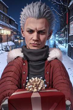 IncrsGettingAPresent, pov, winter clothes, scarf, <lora:POVGettingAPresent:1>, outdoors, night, vergil(dmc5), <lora:Char_DMC_Vergil:0.75>