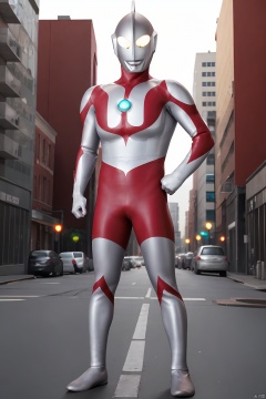 Milky white eyes, male focus, bodysuit, glowing, glowing eyes, alien, multicolored bodysuit, tokusatsu,Urban background,