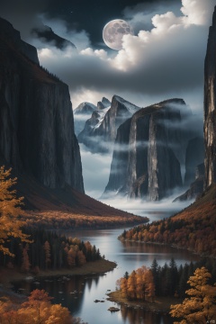 photo RAW,(autumn,mountains and a storm lake with a moon in the sky, old wooden slab home, 4k highly detailed digital art, 4 k hd wallpaper very detailed, impressive fantasy landscape, sci-fi fantasy desktop wallpaper, 4k wallpaper, 4k detailed hdr photography, sci-fi fantasy wallpaper, epic dreamlike fantasy landscape, 4k hd matte, 8k,Realistic, realism, hd, 35mm photograph, 8k), masterpiece, award winning photography, natural light, perfect composition, high detail, hyper realistic, (composition centering, conceptual photography), realistic, detailed, balanced, by Trey Ratcliff, Klaus Herrmann, Serge Ramelli, Jimmy McIntyre, Elia Locardi