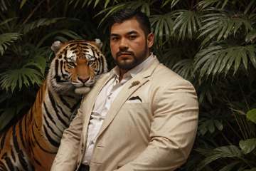 masterpiece,best quality,man,solo,portrait,asians,sit,(looking at viewer),fat,stubble,renaissance,flower,suit and tie,plant,simple background,<lora:WildCompanion_v01:0.7>,animalstyle,(a man next to large tiger:1.2),style,<lora:epiCRealismHelper:1>,<lora:epiNoiseoffset_v2-pynoise:1>,