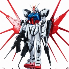 Gundam, solo, holding, green_eyes, weapon, wings, holding_weapon, gun, no_humans, glowing, robot, holding_gun, mecha, glowing_eyes, flying, science_fiction, mechanical_wings, v-fin, energy_gun, beam_rifle, cinematic lighting,strong contrast,Gundam,SRS,mechanical buddy universe