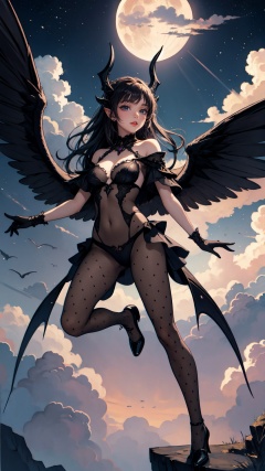 <lora:merged_0022:0.8>,(tutututu),pantyhose,((black footwear)),standing,BREAK((best quality)),((masterpiece)),(detailed),alluring succubus,ethereal beauty,perched on a cloud,(fantasy illustration:1.3),enchanting gaze,captivating pose,delicate wings,otherworldly charm,mystical sky,(Luis Royo:1.2),(Yoshitaka Amano:1.1),moonlit night,soft colors,(detailed cloudscape:1.3),(high-resolution:1.2),