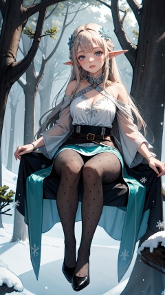 <lora:merged_0022:0.8>,(tutututu),pantyhose,((black footwear)),era elf,(giant elves sit on the treetops:1.2),(snowflakes:1.4),enchanting beauty,(fantasy),(elf mother tree),(world tree),ethereal glow,pointed ears,delicate facial features,long elegant hair,mystical ambiance,soft lighting,tranquil expression,harmonious with nature,subtle magical elements,serene,dreamlike quality,pastel colors,1person,(castle),